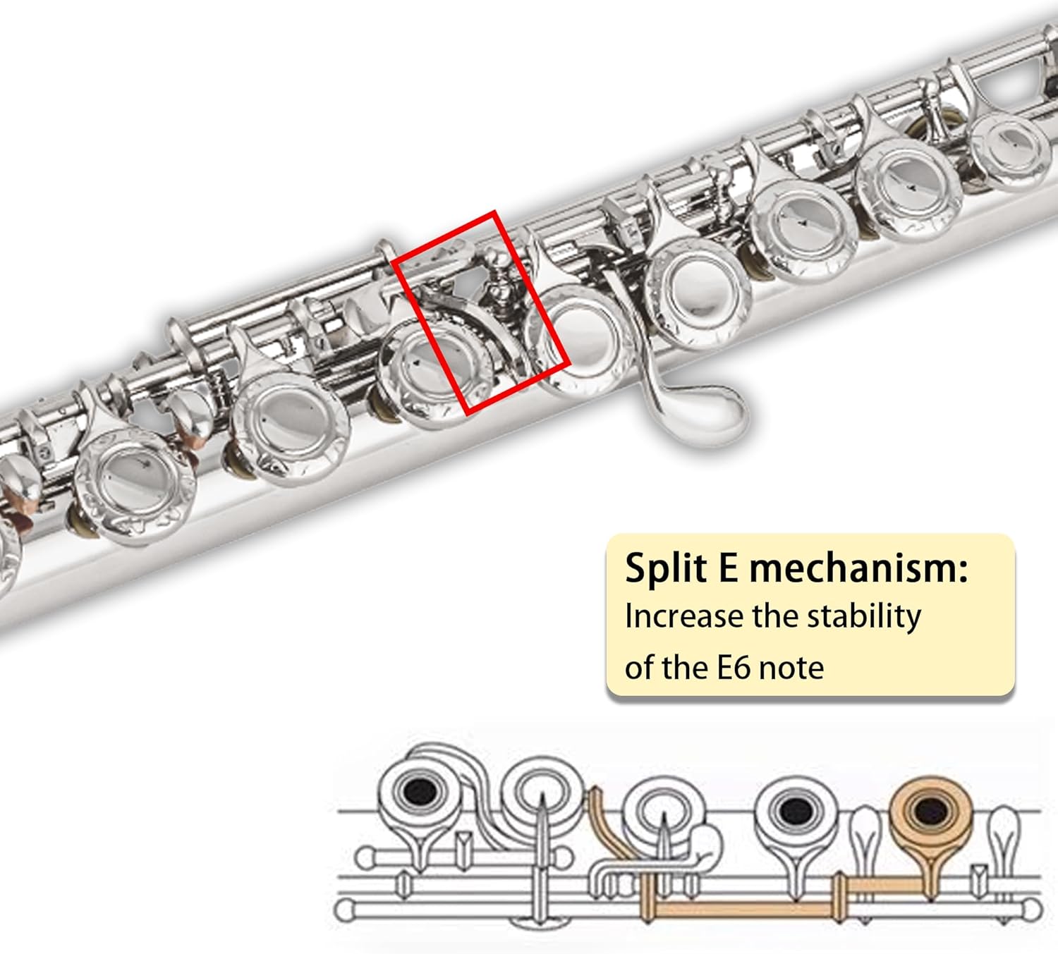 BAHAMUT B Foot Flute, 17 Open Hole Flauta with Offset G, Split E Mechanism, 17 Key Flute Instrument for Professional Performance